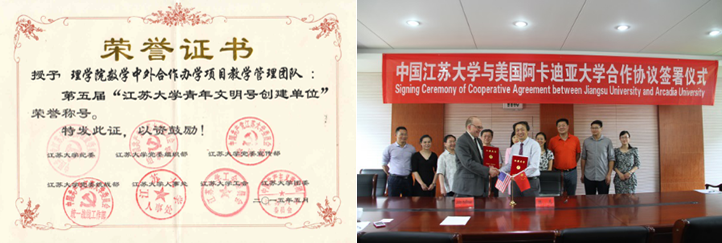 江苏大学与美国阿卡迪亚大学合作举办数学与应用数学专业本科教育项目,经教育部批准(批准书编号: MOE32US2A20121231N),该专业招生方式为纳入国家普通高等教育招生计划,参加全国普通高等澳門漁人碼頭