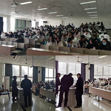 副院长刘希刚与办公室主任任丽红,教研部主任李飞、王萌、蒋宏大等老师组成巡查小组,对开学第一课的教学情况进行了巡查。重点对课堂教学秩序、教学环境、学生出勤及教学设施运行情况等方面进行了检查巡视,详细了解了新学期教学工作开展情况,并对上课师生进行问候,叮嘱教师在教学过程中提高课堂管理效率,教室前三排必须坐满同学,积极关注学生学习状态,努力提升教学能力,为提高人才培养质量打下坚实基础。新学期第一节课,李卉老师、杨荣刚老师、黄继红老师、桂琴老师、于海亮老师、栾亮老师均在8:00前进入教室进行教学设备试运行,做好教学准备,准时开展授课。从新学期第一课的教学巡查情况来看,思政课教学课堂秩序井然,各位教师授课准备充分、扎实严谨,师生精神风貌焕然一新,互动气氛活跃融洽,展现出新学期的新气象。