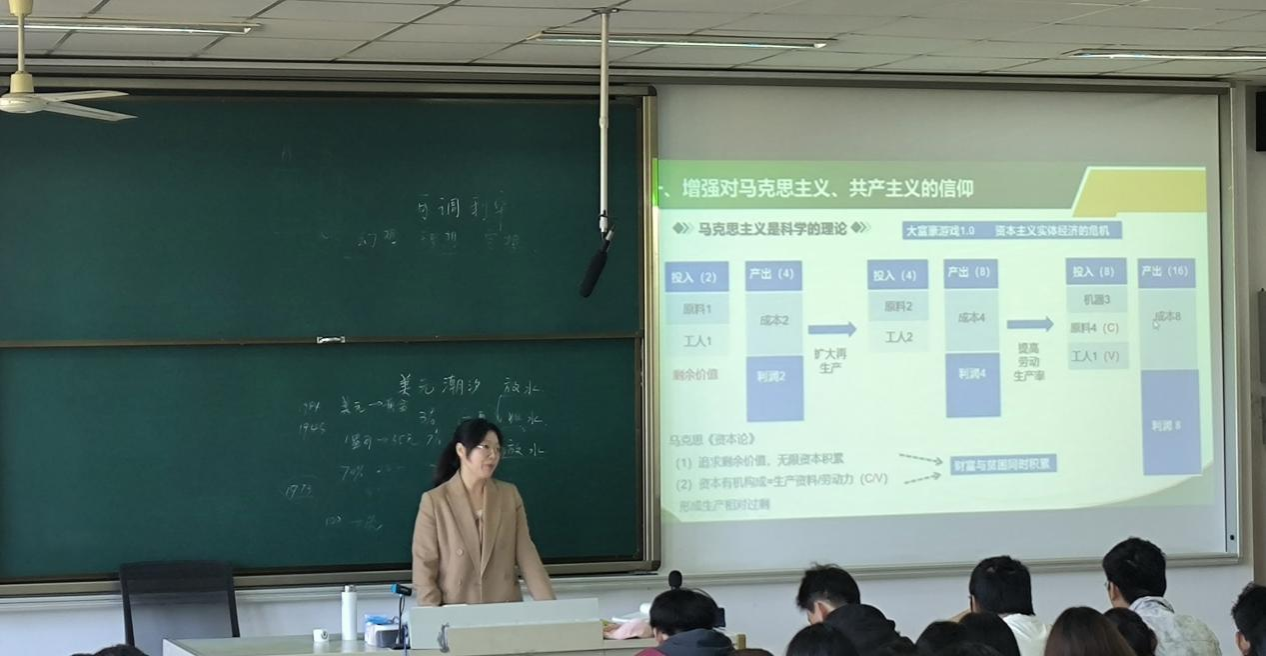 解兆丹老师在《思想道德与法治》课程教学中,就“树立共产主义理想信念”主题进行专题教学,体现了教学内容丰富多彩、教学方法多种多样的课堂教学特点。