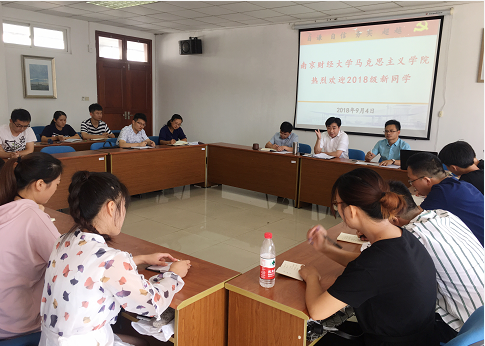 和专业、英语四六级通过情况、兴趣爱好、现在的学科专业等方面进行了自我介绍。与会的各位导师也在介绍自己的学术研究领域及研究方向的基础上,对2018级研究生接下来的学习生活提出了相应的期望和要求。2017级思想政治教育专业的顾唯奇同学代表老生发言,寄语新生尽早规划好三年的读研时间,力争在学术研究、综合能力等方面都能取得比较满意的成绩。2018级马克思主义中国化研究专业的陈寒醒同学代表新生发言并向各位导师送上了教师节祝福。