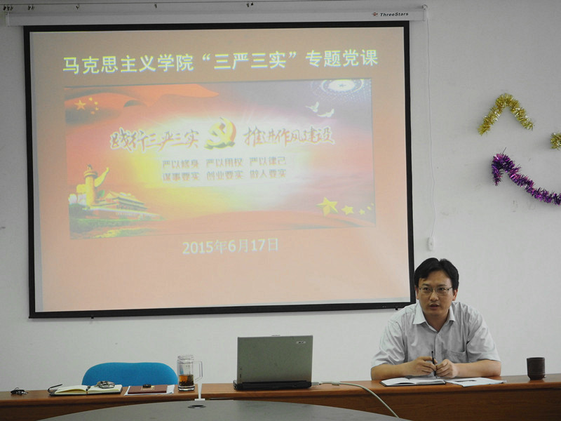 科级以上领导干部、党总支委员、教职工党支部委员、教研室主任、分工会委员、校教代会代表等参加会议。院党总支书记殷建新以“践行三严三实,推进作风建设”为题上了一次专题党课。