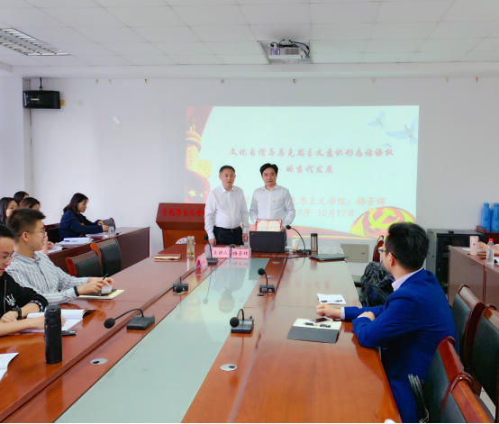 讲座伊始,梅景辉院长列举了若干与文化自信相关的历史事件,激发了在场师生的兴趣与思考。通过对历史脉络的分析与把握,他作出了关于新时代文化自信历史坐标的两个基本判断:一是中西古今的冲突与融合;二是科学时代的文化发展。随后,他通过引入葛兰西“文化领导权”的概念深刻阐释了文化自信与意识形态之间的张力。他认为只有在文化上取得领导权才有可能产生意识形态的认同,进而实现价值观与思想上的统一性。他列举了大量历史与文学方面的案例,深化了听众对文化自信与文化领导权关系的理解。紧接着,他从学术角度对马克思主义意识形态话语权的当代构建提出了自己的见解。他指出意识形态话语权具体表现为权利、权力和权威三个维度,而马克思主义意识形态话语的“权威”性与文化领导权和政治领导权的交融相关联,马克思主义意识形态话语权的当代构建与发展必须形成权威的思想理论和权威的有机知识分子团体,才能够在当前的意识形态的交锋中处于核心指导地位。最后,梅景辉院长基于对美国学者福山“历史终结论”和亨廷顿“文明冲突论”的反思,对意识形态话语权的现代性功能进行了深入讨论。他强调中国优秀传统文化和文化产业发展的融合,不仅提升了文化软实力的发展根基,而且也拓展了马克思主义意识形态的思想内涵,最终实现马克思主义意识形态话语权的构建与发展。