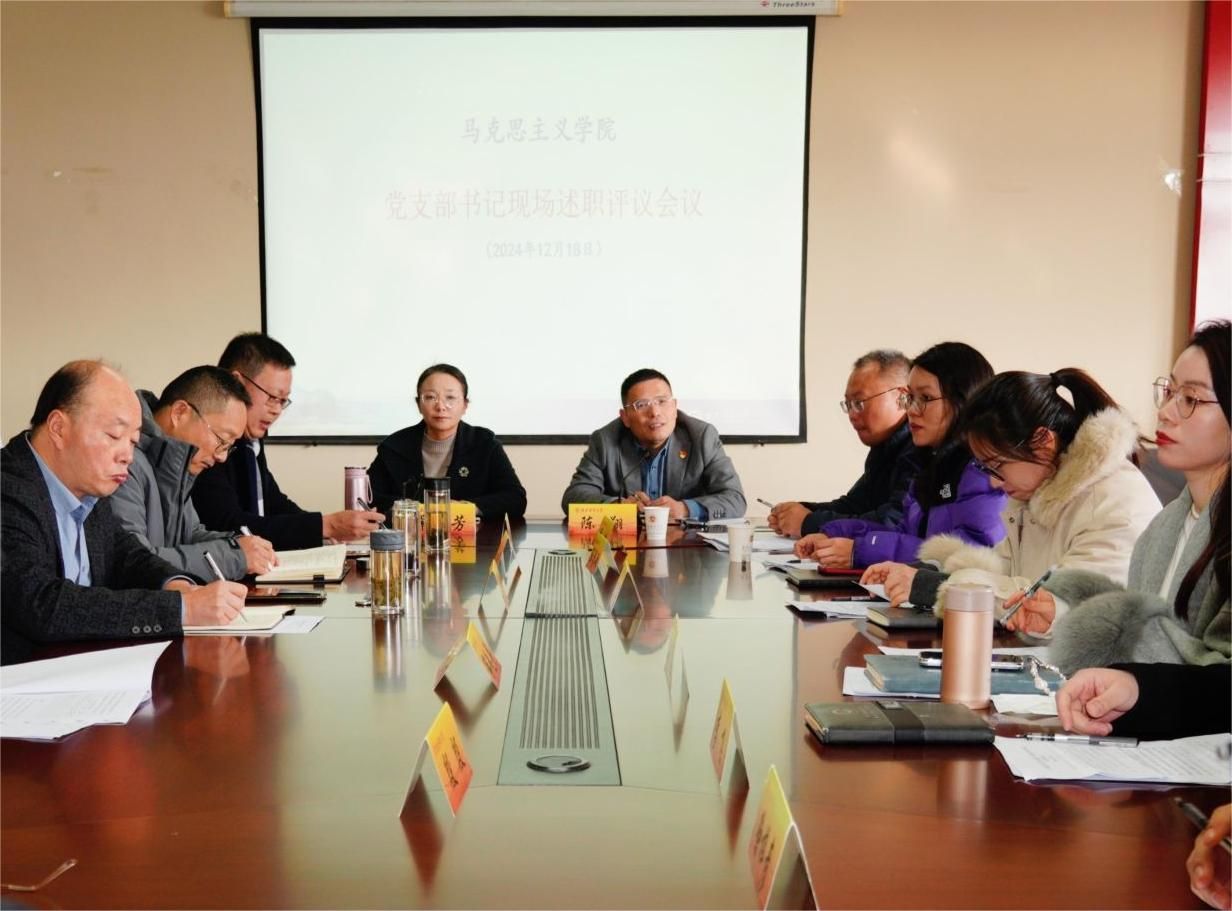 第一项议程主要为2024年度党支部书记抓基层党建述职评议考核会议。马克思主义基本原理教研部党支部书记王萌、马克思主义中国化教研部党支部书记黄继红、中国近现代史纲要教研部党支部书记李飞、思想道德与法治教研部党支部书记徐梓彦进行了述职。澳門漁人碼頭