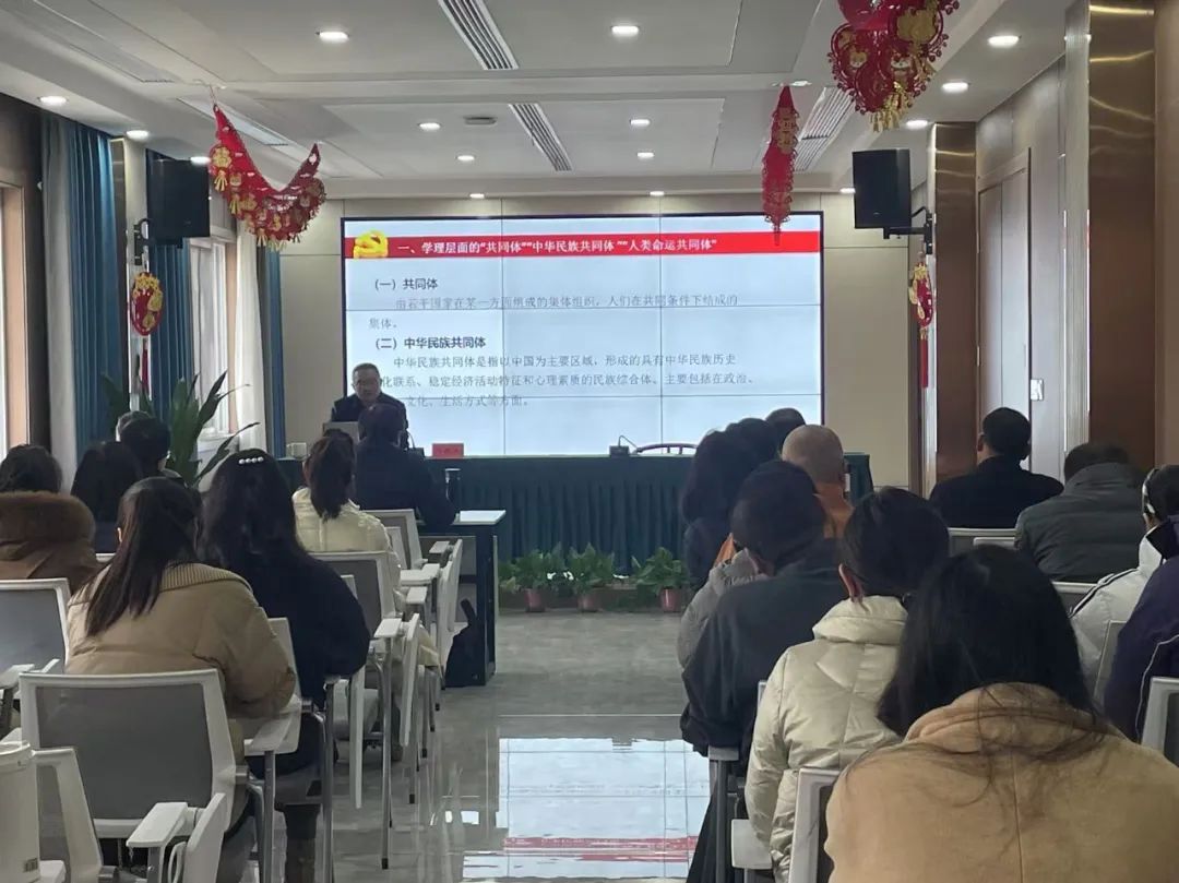 副院长、教授王敏光以“铸牢中华民族共同体意识”为主题进行了授课。王敏光在授课中指出,中华民族共同体意识是国家统一之基、民族团结之本、精神力量之魂,铸牢中华民族共同体意识是新时代党的民族工作的主线,要紧紧围绕铸牢中华民族共同体意识这条主线,扎实推进民族团结进步事业。