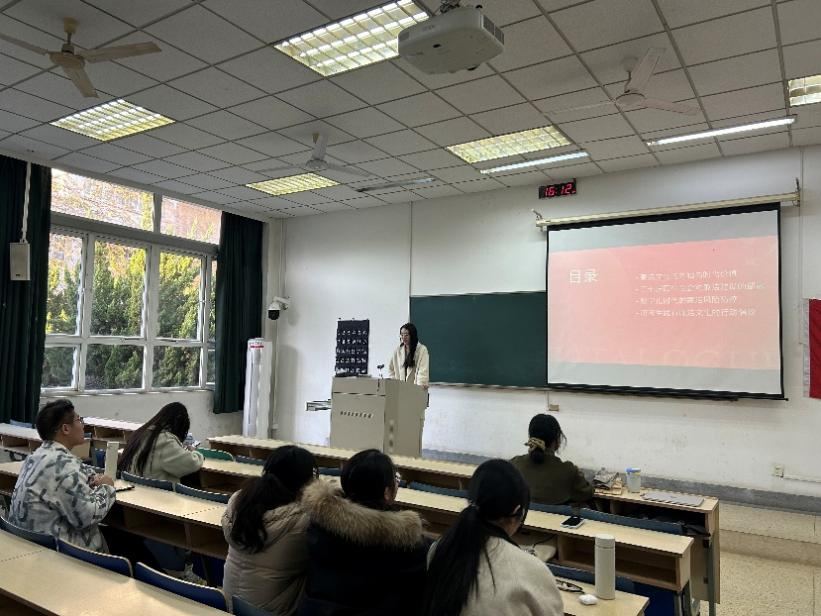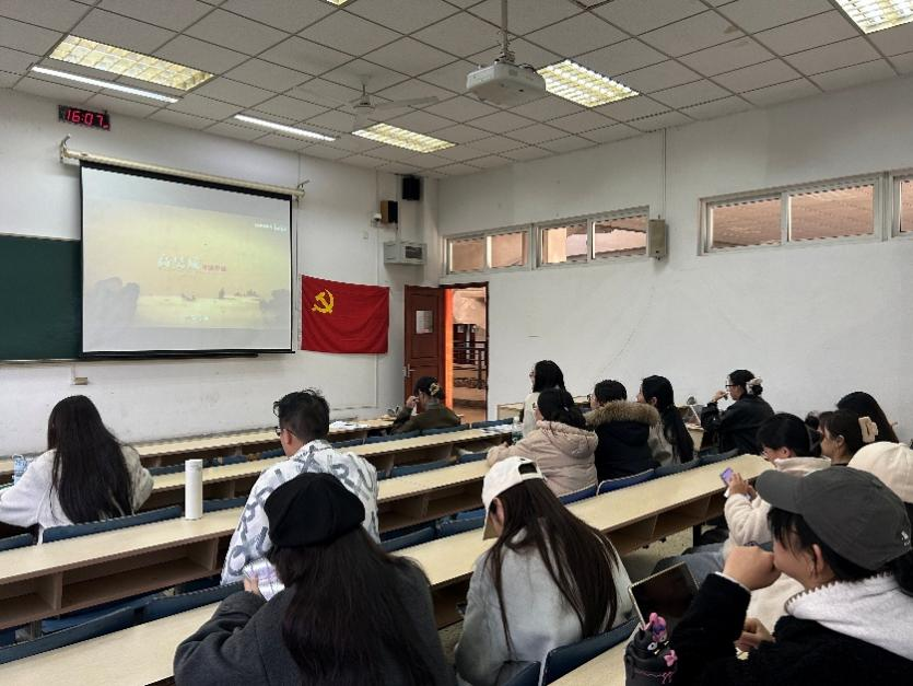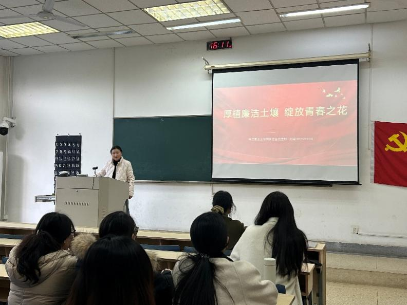 与会党员集体观看了廉洁文化主题教育宣传片。随后,王若涵同志围绕学习贯彻党的二十届四中全会精神,结合新时代廉洁文化建设的内涵与时代价值,系统解读了全会关于全面从严治党的新部署新要求。她从高校实际出发,探讨了廉洁教育的实践路径,并结合数字化时代面临的廉洁风险,向全体党员发出自觉践行廉洁文化的行动倡议。