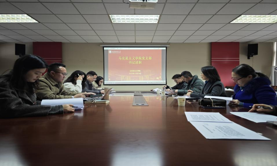 随后,全院5个党支部书记依次述职。思想道德与法治党支部书记徐梓彦汇报了“党建+教学创新”及“大中小思政一体化”特色活动的推进成效;《中国近现代史纲要》教研部支部书记李飞围绕党史学习教育、红色实践融入课堂等工作展开阐述;马克思主义中国化教研部支部书记黄继红分享了“线上+线下”融合学习模式及科研攻关的融合成果;马克思主义基本原理支部书记王萌聚焦“马原杯”品牌活动,汇报了党建与教研协同发展的实践;研究生党支部书记付菁菁介绍了规范组织生活、推动理论学习与学术研究融合的具体举措。各位书记既全面总结履职成绩,也坦诚剖析工作短板,现场点评直击要害,提出了针对性改进建议。