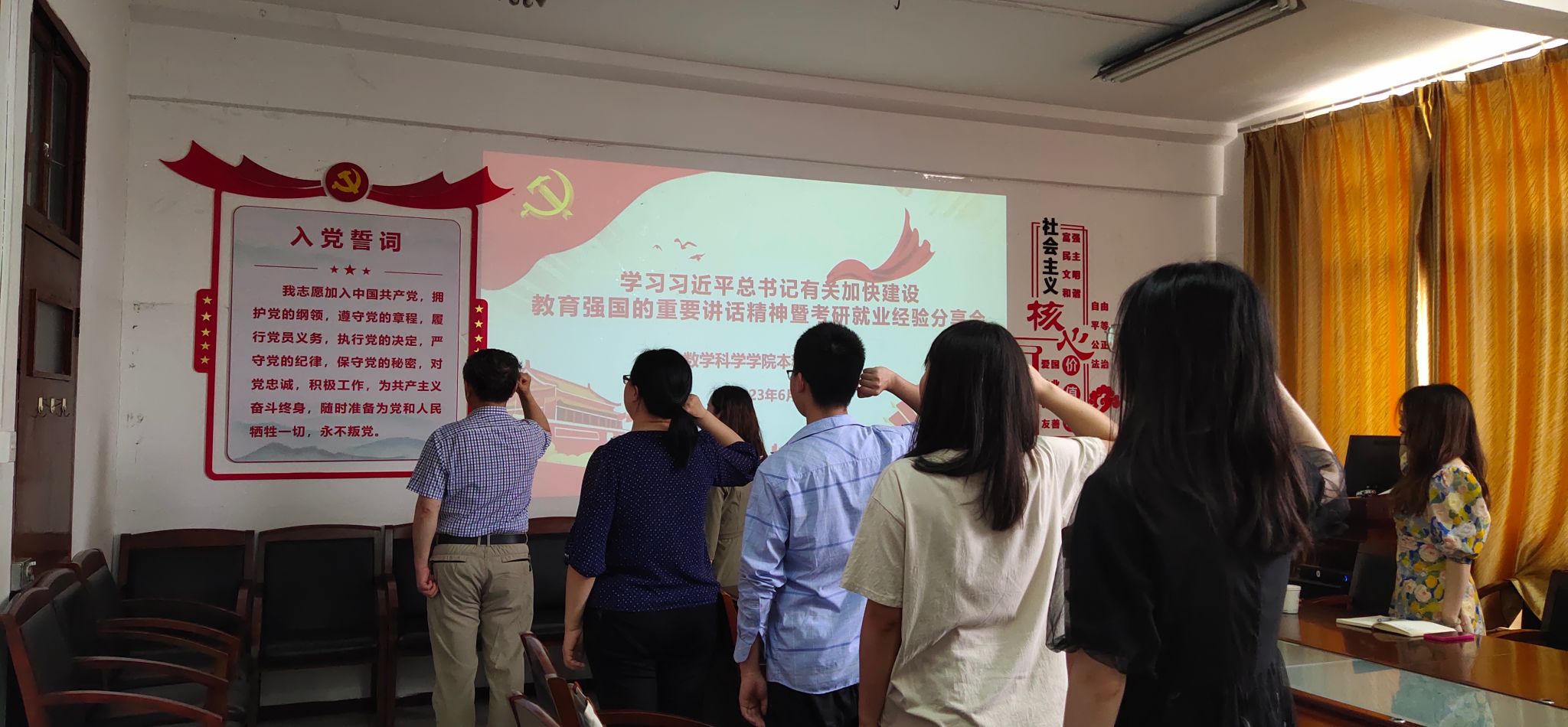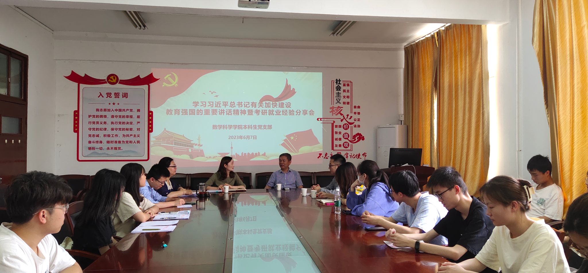本科生党支部在动力楼206召开学习习近平总书记关于有关加快建设教育强国的重要讲话精神暨考研就业经验分享会。学习会由本科生党支部书记汪文丽主持,院关工委常务副主任卢殿臣应邀出席,院党务办主任贡崇颖、辅导员尹华、武启慧、朱江涛及学生党员参加。