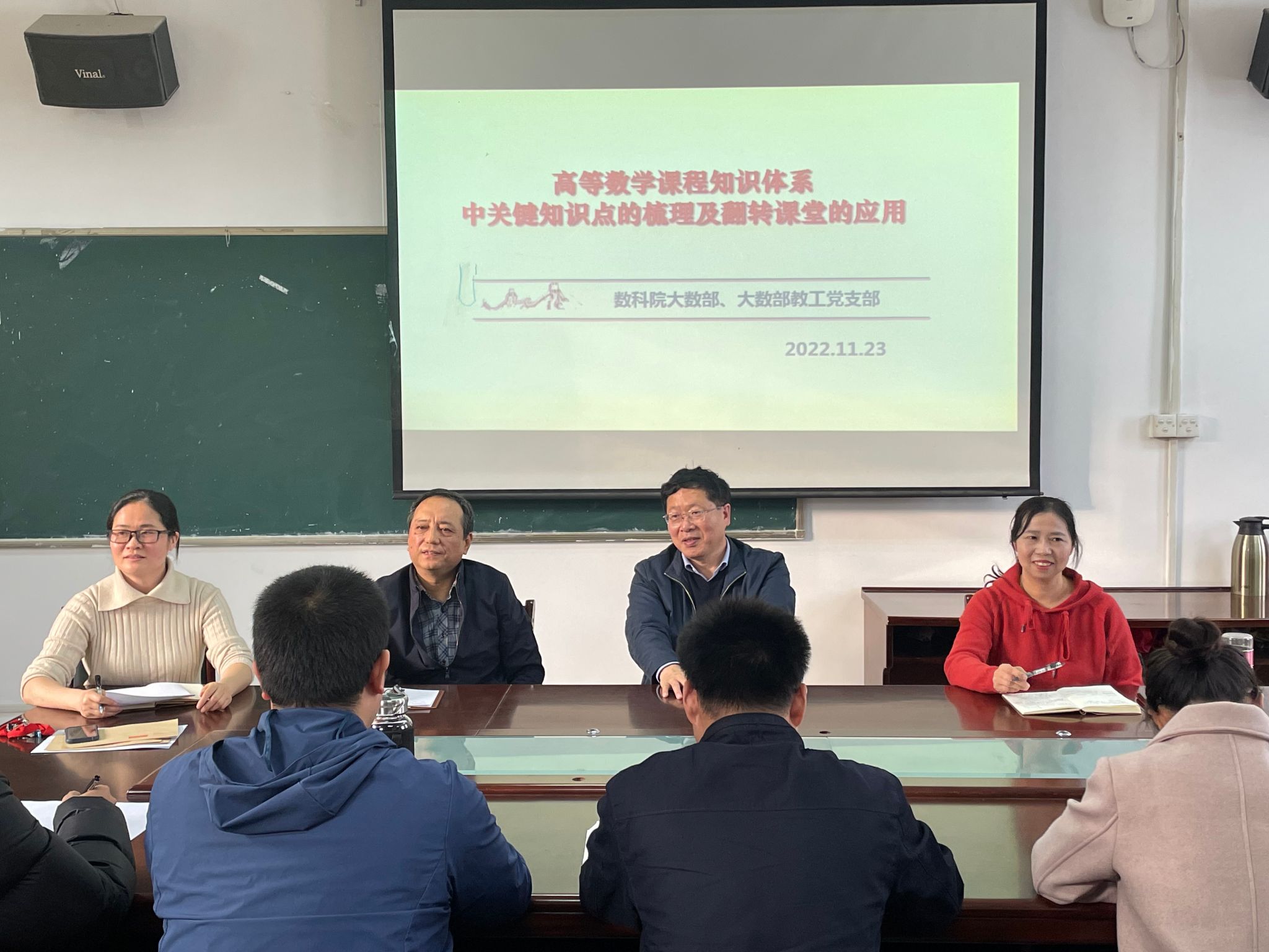 2022年11月23日下午,大学数学教学部教工党支部在数科院四楼会议室开展了以 “党建引领促教学,教书育人争先锋” 为主题的党日活动。联系本支部的校党委常委副校长田立新教授、校教学督导冯志刚、分管教学副院长陈文霞、澳門漁人碼頭