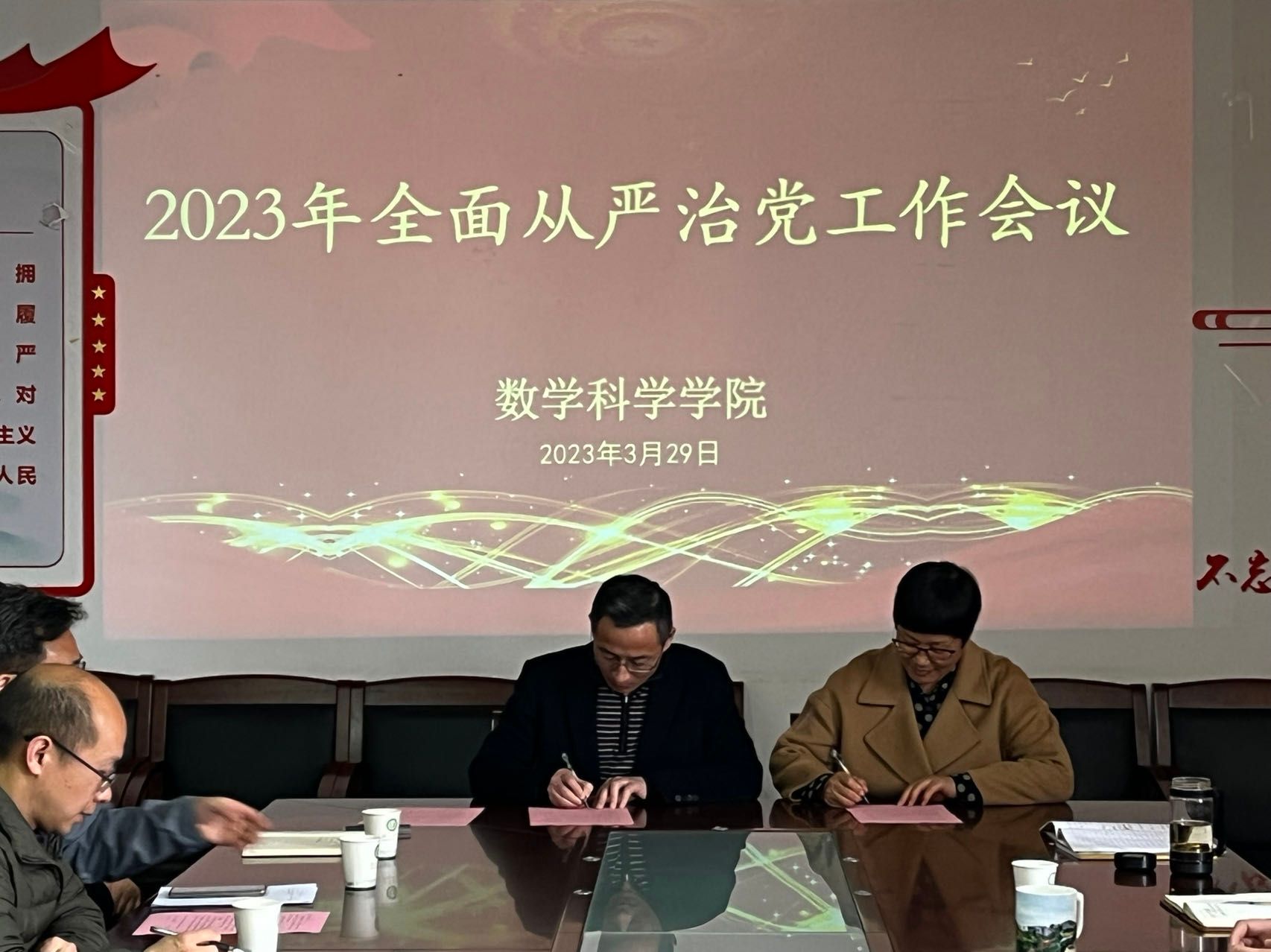 329日,澳門漁人碼頭 在动力楼206会议室召开2023年度全面从严治党工作会议。澳門漁人碼頭 全体处级领导干部、科级干部、各党支部书记和系主任参加会议。会议由澳門漁人碼頭 党委书记张世兵主持。