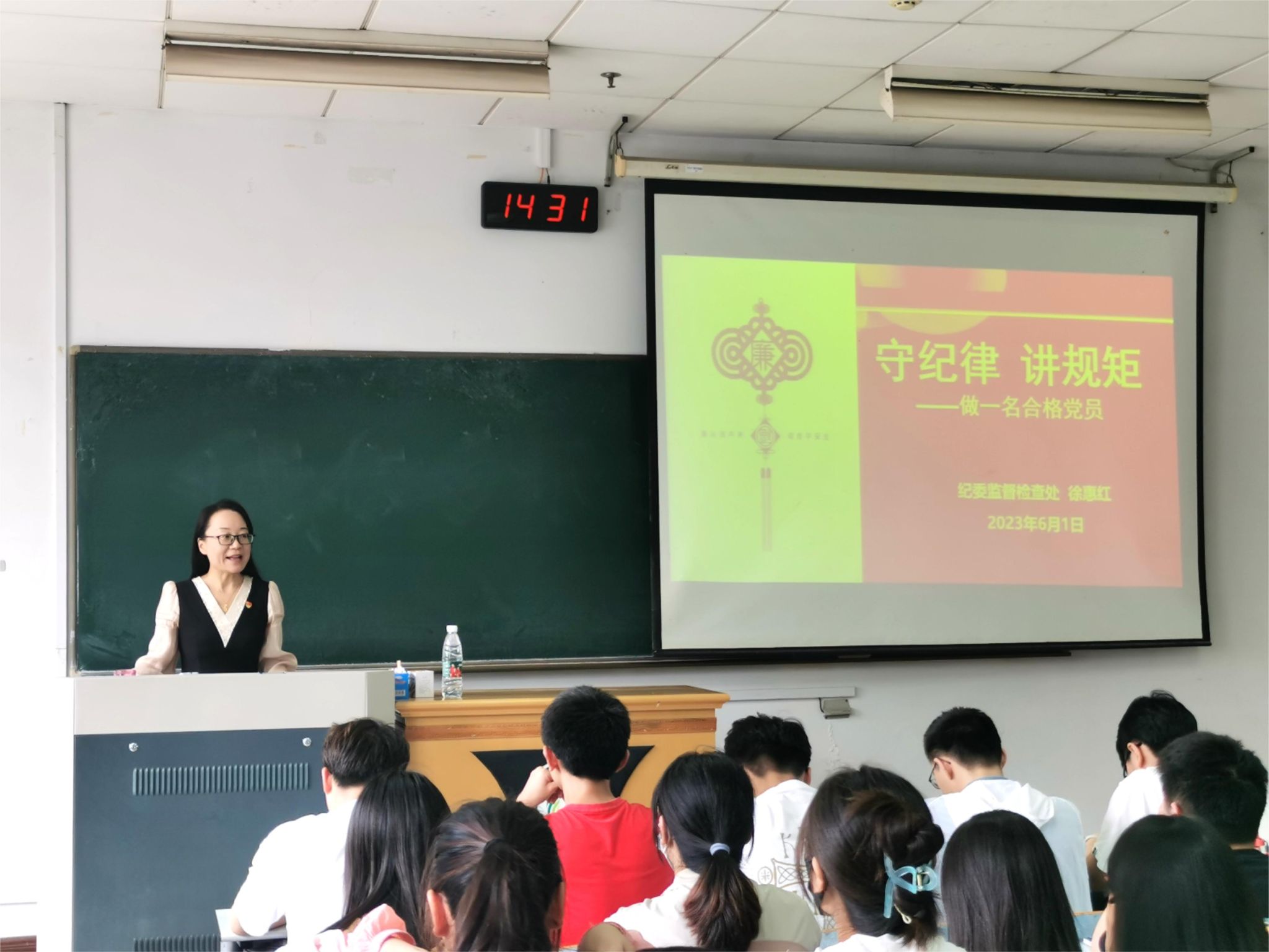 徐惠红从“党的十八大以来全面从严治党新形势新要求新成效”“正确认识纪律与规矩”“习近平总书记的青年观”“让守纪律讲规矩成为当代大学生党员鲜明品格”四个方面,结合真实鲜明的案例、生动鲜活的榜样故事,分析讲解廉洁自律对党员的重要性。最后提出对党员的五点要求:一是要牢记自己的第一身份是党员;二是要强化纪律学习的自觉;三是要保持对组织和纪法的敬畏;四是要正确看待我国的反腐倡廉形势;五是要树立正确纪律观,一个合格党员。