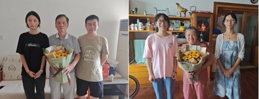 师生代表前往退休老教师钟瑜荪和王文初老师家中看望慰问。教师代表李健,学生代表张文龙、邱紫莹、吴亦琪、卢雯雯参加走访活动。