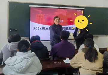 104教室举行爱心棉服发放仪式。活动特邀院关工委老教师王文初出席,24级家庭经济困难学生参加。活动由辅导员李健主持。
