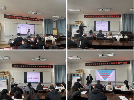 于2024年10月25日下午在四楼会议室举行了江苏大学第十二届教师教学竞赛选拔赛。竞赛由副院长陈文霞主持,邀请了教务处李新朝副处长、院关工委王学弟教授、计算数学系王林君主任、公共数学部钱丽娟主任等校内专家担任评委。培养期的青年教师全程观摩此次竞赛。