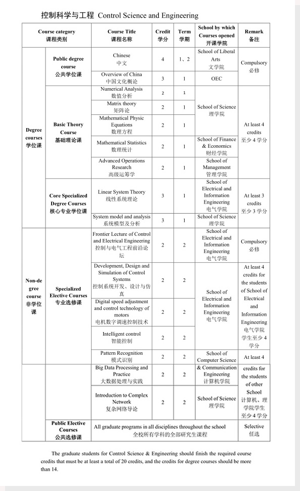 Master Degree Program in Control Science and Engineering