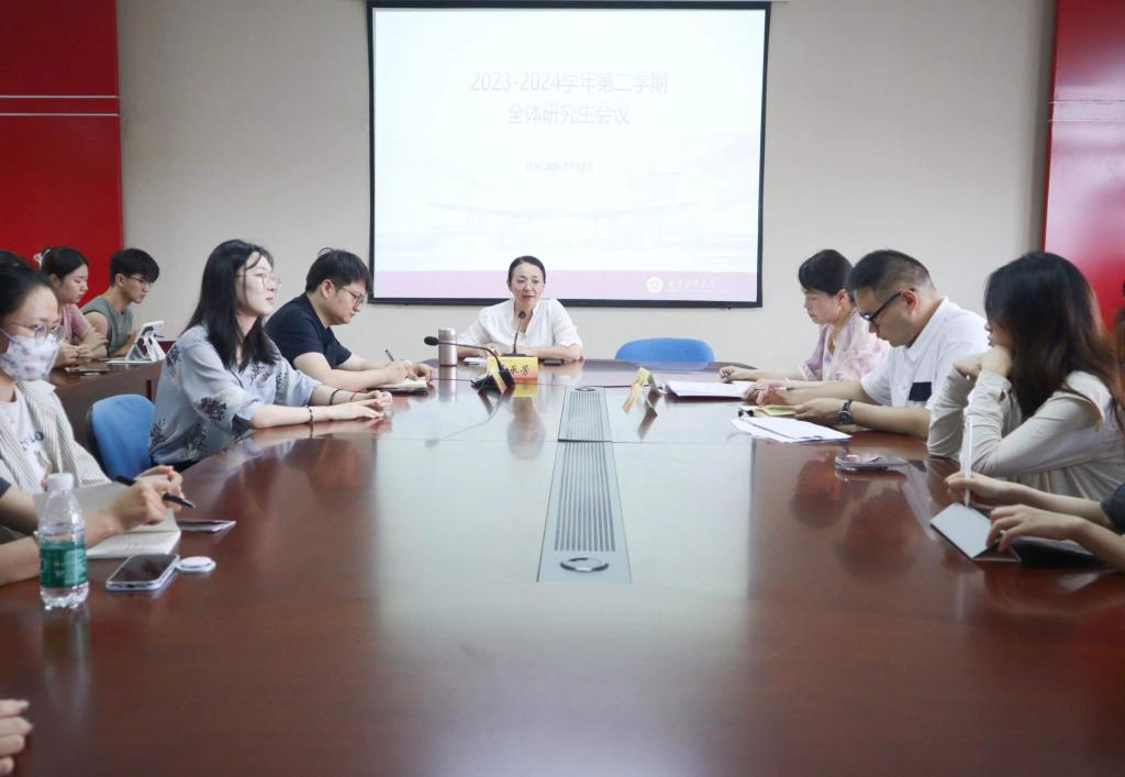 会议伊始,辅导员王晶老师就暑期安全、电信诈骗、求职就业等几个方面提出建议,希望同学们在假期注意自身安全。研究生秘书张妍老师针对研究生培养方案和学术要求进行了详细解读,包括课程设置、考试要求、学术讲座等方面的内容,使同学们对各方面有了更加清晰的了解。在此基础上,院长助理范渊凯副教授进一步强调,研一同学需要利用假期确定研究方向,做好论文开题方面的准备,研二同学需要与导师及时沟通交流,根据开题答辩的情况对论文做进一步修改,按时完成毕业论文的撰写。