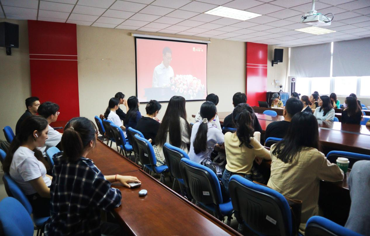 组织全体学生在德正楼508会议室集中参加学习。