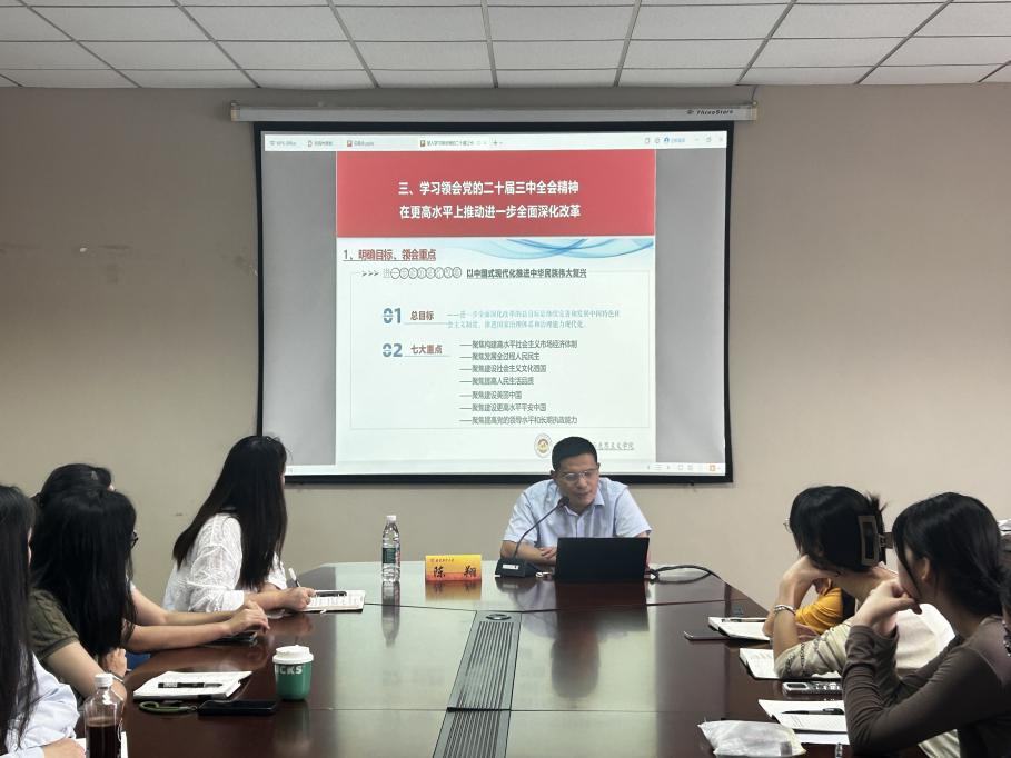 2024级研究生党员、预备党员和入党积极分子讲授了一堂主题为“学习领会党的二十届三中全会精神,进一步全面深化改革,开辟中国式现代化”的党课。