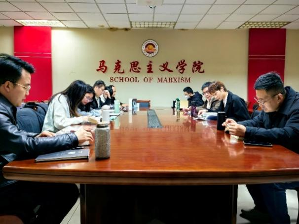 研究生会组织的“书香马院”读书会在德正楼508会议室顺利举行。本次读书会由吴伟和谢家新老师领读,辅导员王晶、青年教师亓为康以及24、25级研究生共同参加。