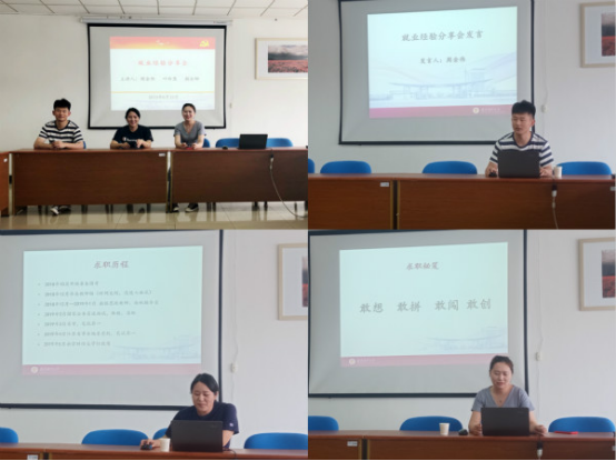 在德正楼508会议室举办就业经验分享会。2019届毕业生周金伟、蒯金娜、叶玲慧应邀作经验分享。全体2017级和2018级硕士研究生参加了此次分享会。会议由院研究生会秘书长姜子玥同学主持。
