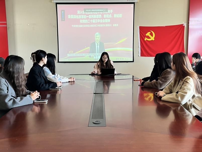 研究生党支部在德正楼508会议室召开“深入学习贯彻习近平总书记关于全面深化改革的一系列新思想、新观点、新论断和党的二十届三中全会精神”专题学习会,会议由支部书记左云云同志主持,支部全体研究生党员参与学习。