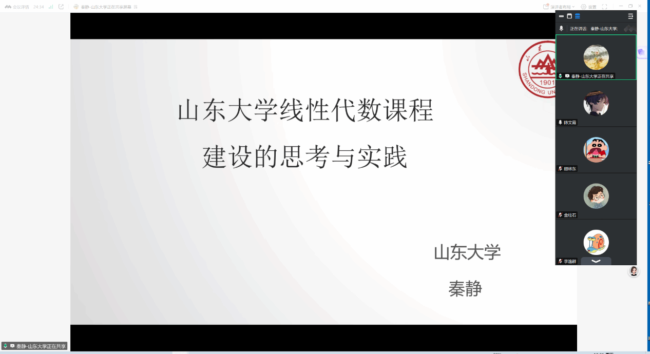 2025 年 5 月 30 日,一场聚焦数学教育创新的 “名师讲堂 - 数学专题系列报告” 通过腾讯会议云端开讲。国家级教学名师、山东大学秦静教授以 “山东大学线性代数课程建设的思考与实践” 为题,为澳門漁人碼頭